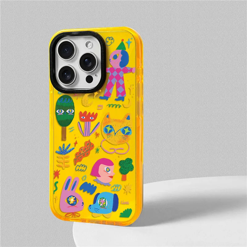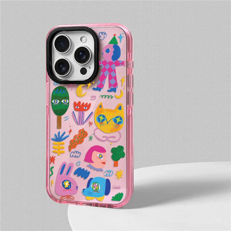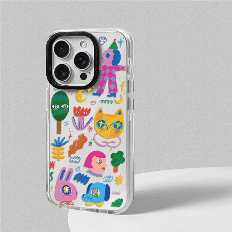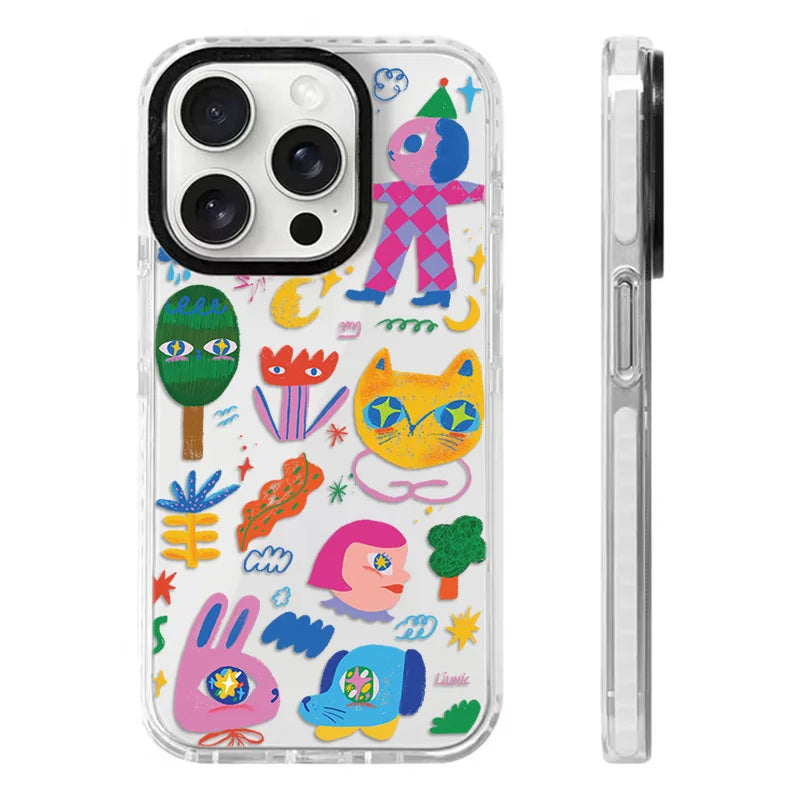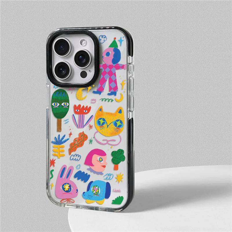 Vibrant and Imaginative. Our The Dreamland case transforms your phone into a canvas of bold colors and quirky hand-drawn characters, from starry-eyed kittens to whimsical abstract figures. It’s the ultimate mood-booster for your tech. A standout piece designed for the trendsetters who love to express their unique personality through a burst of creative energy.