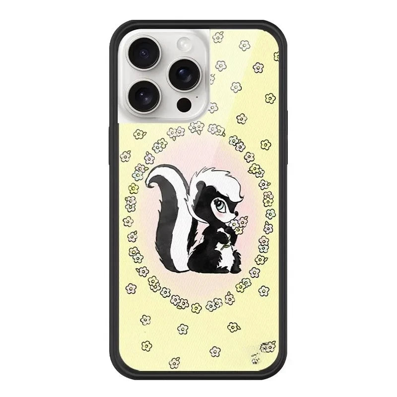 Pure, Gentle, and Full of Nostalgic Charm. Our The Shy Skunk case invites you into a serene meadow from a classic childhood tale. Featuring a sweet, wide-eyed skunk delicately sniffing a bouquet of wildflowers, this design is framed by a whimsical floral wreath against a warm, buttery yellow backdrop. It’s a heartwarming tribute to the "cottagecore" aesthetic and the simple beauty of nature. Perfect for those who love vintage-inspired illustrations and want a daily reminder to stop and smell the flowers.
